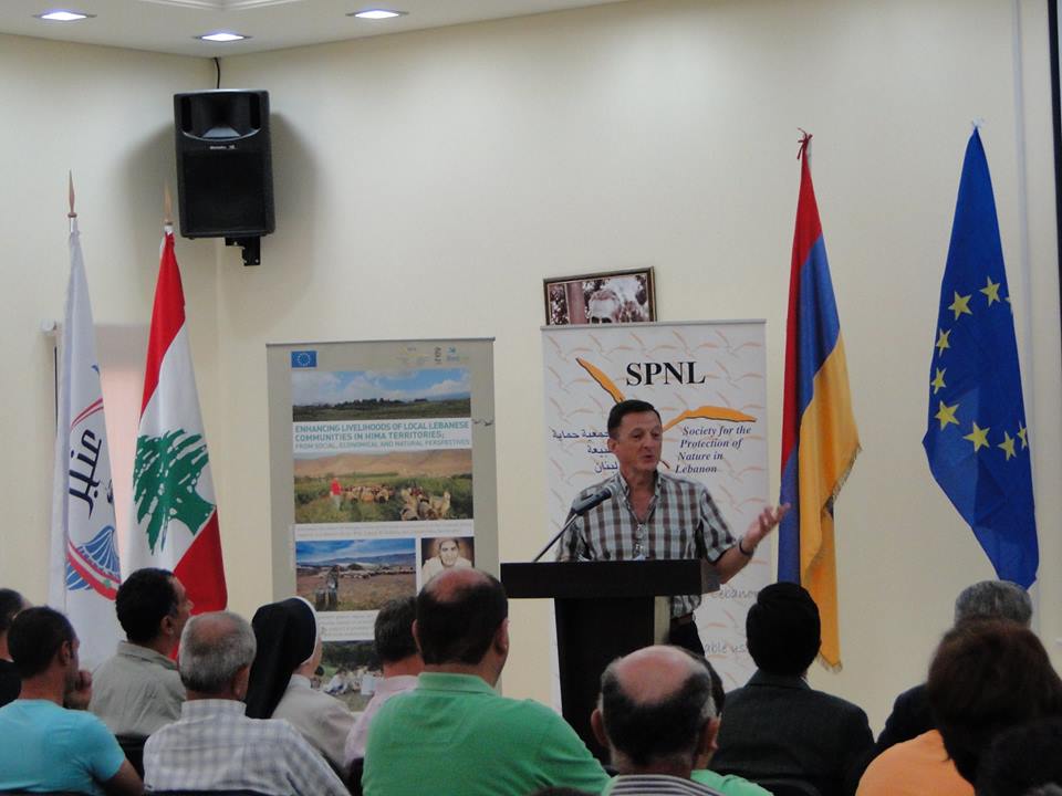 Mr. Marcelo Mori from the Delegation of the European Union to Lebanon said that he is pleasured to announce the launching of the project “ Enhancing the livelihoods of local Lebanese communities in Hima territories; from social, economical, and natural prespectives” which aims to decrease the effects of Syrian influx on the local community of ( Anjar/ Kfar Zabad/ Fekhaa, Ain Zbdee ), thus improving the livelihood conditions of farmers, grazers, trout fishery and women in those areas.